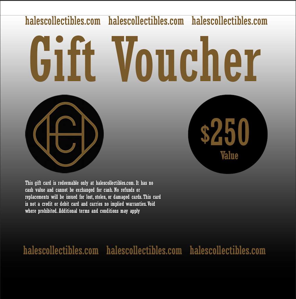 Gift Cards Categories: All Pokemon Graded Cards PSA CGC English Japanese Packs English Japanese Sports Authentic Signed Helmets Autographed Footballs Autogrpaghed Jerseys Graded Cards Ungraded Cards Gift Cards More (coming soon!) All / Hale's Collectibles Gift Card $5 $5.00 Hale's Collectibles Gift Card $25 $25.00 Hale's Collectibles Gift Card $50 $50.00 Hale's Collectibles Gift Card $75 $75.00 Hale's Collectibles Gift Card $100 $100.00 Hale's Collectibles Gift Card $250 $250.00 Hale's Collectibles Gift Card $500 $500.00
